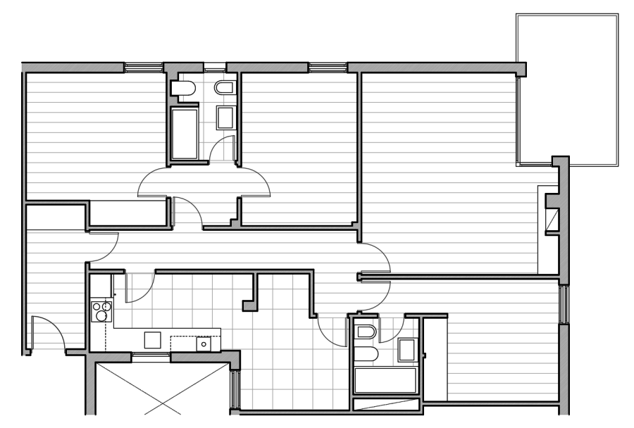 Con la reforma integral de esta vivienda de esquina, donde predominan la luz natural y las vistas, se pretende conseguir espacios de gran funcionalidad donde se aproveche esta ubicación privilegiada para que la zona de día ocupe las dos fachadas exteriores del edificio.