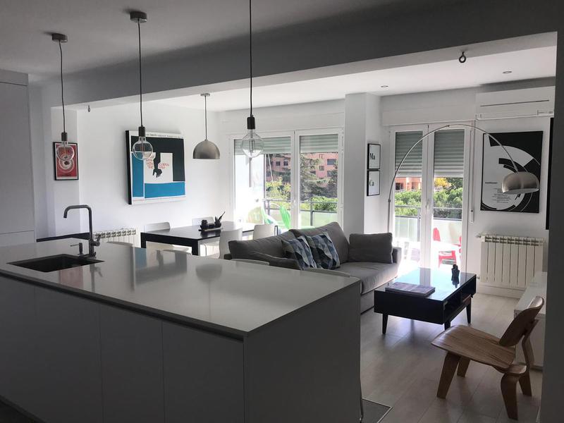 Así, el programa de la vivienda se organizó en dos zonas. Por un lado, una gran zona de día, iluminada por dos grandes ventanales que dan acceso a una terraza corrida con vistas al río Manzanares.