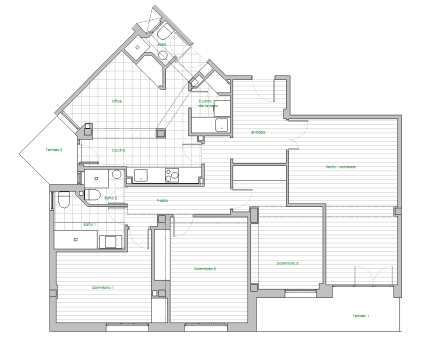 El objetivo de esta reforma integral de vivienda era conseguir unos espacios muy funcionales, amplios y de gran luminosidad. Para ello se eliminó todo vestigio del estado original creando un espacio en bruto sobre el que empezar de cero.