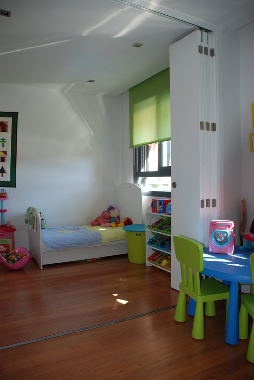 o2. Unificación de los dormitorios de niños de forma que el espacio pueda actuar como un gran cuarto de juegos o convertirse en dos dormitorios independientes.